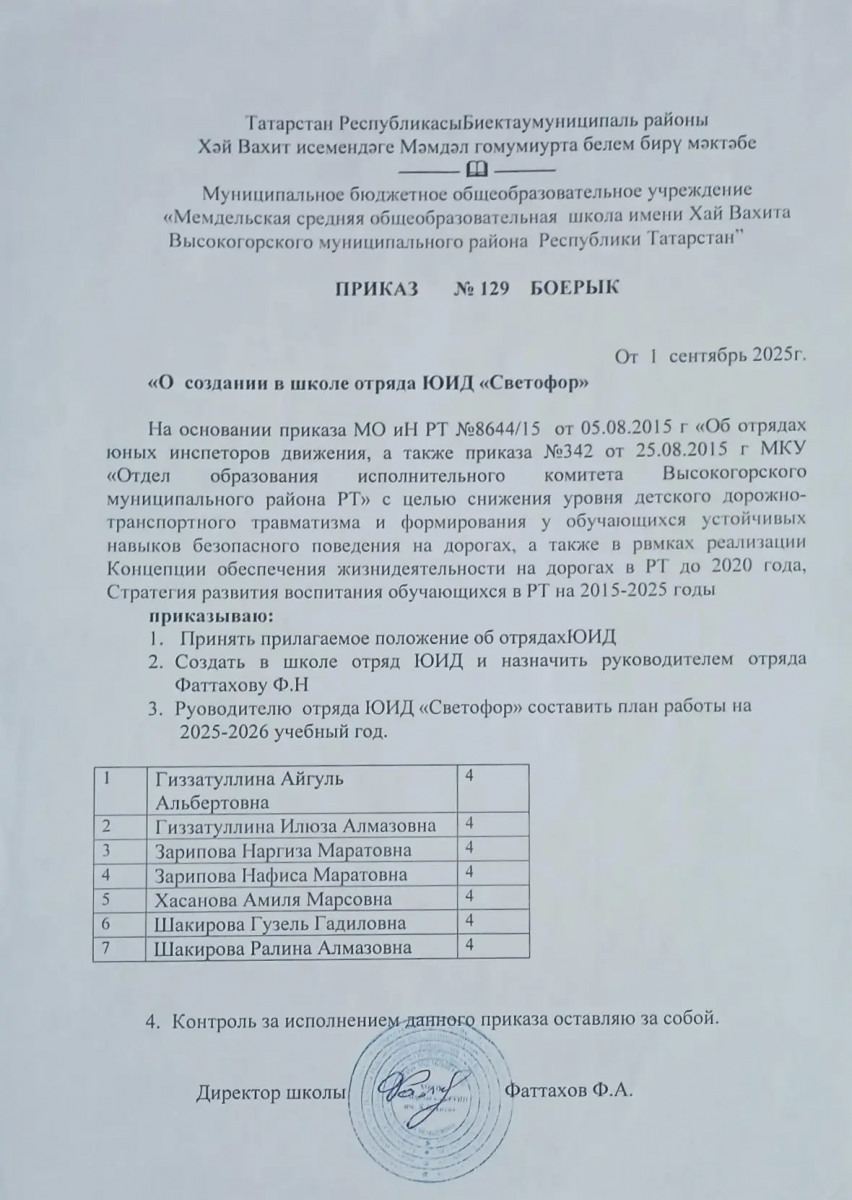 Короткое название: МБОУ "Мемдельская СОШ имени Хай Вахита"