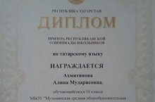 Ученица Мингазетдиновой Р.Ф Салахутдинова Алия 9 класс стала призером в Республиканской олимпиаде по татарской литературе. Поздравляем Алию и её учителя Розалию Файзрахмановну и желаем дальнейших успехов. Минһаҗетдинова Розалия Фәйзрахман кызының укучысы Алия татар әдәбияты фәне буенча Республика олимпиадасында призер булды. Розалия Файзрахмановнаны ирешелгән уңышы белән котлыйбыз һәм эшендә уңышлар теләп калабыз. Алия, 9 класс укучысы, татар әдәбияты фәне буенча Республика олимпиадасында призер булды. Алияне шушы зур уңышы белән тәбрик итәбез һәм укуында тагын да зур үрләргә ирешүен теләп калабыз. 01.02.2018