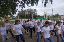 Утренняя гимнастика. Члены ученического комитета "Радуга" устраивают различные флеш-мобы и физ.зарядки. Детям очень нравятся. 05.09.2015