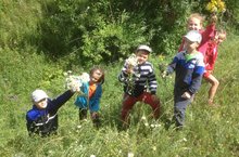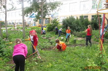 Төшке аштан соң балалар мәктәп каршындагы чәчәклеккә чыгып киттеләр. Анда чүп үләннәрен утадылар һәм йомшарттылар.