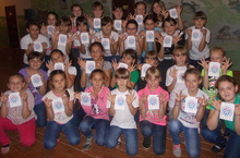 Участники проекта раздавали наклеечки со смайликом, делясь своей улыбкой и предлагали людям передавать наклеечки и свои улыбки дальше.Наша первая акция и флеш-моб очень понравились жителям нашего села.
