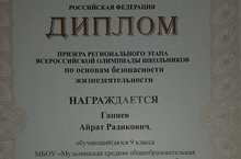 Поздравляем! Ученик 9 класса Ганиев Айрат стал призером регионального этапа Всероссийской олимпиады школьников по ОБЖ/ Котлыйбыз! 9 нчы сыйныф укучысы Ганиев Айрат ТИН фәне буенча бөтенроссия фән олимпиадасының региональ этабында призер булды. 12.02.2020