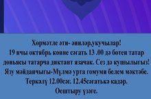 19 октябрьдә "Татарча диктант Яз" акциясенә кушылыгыз! 19 октября присоединяйтесь к Акции "Татарча диктант Яз" 15.10.2019