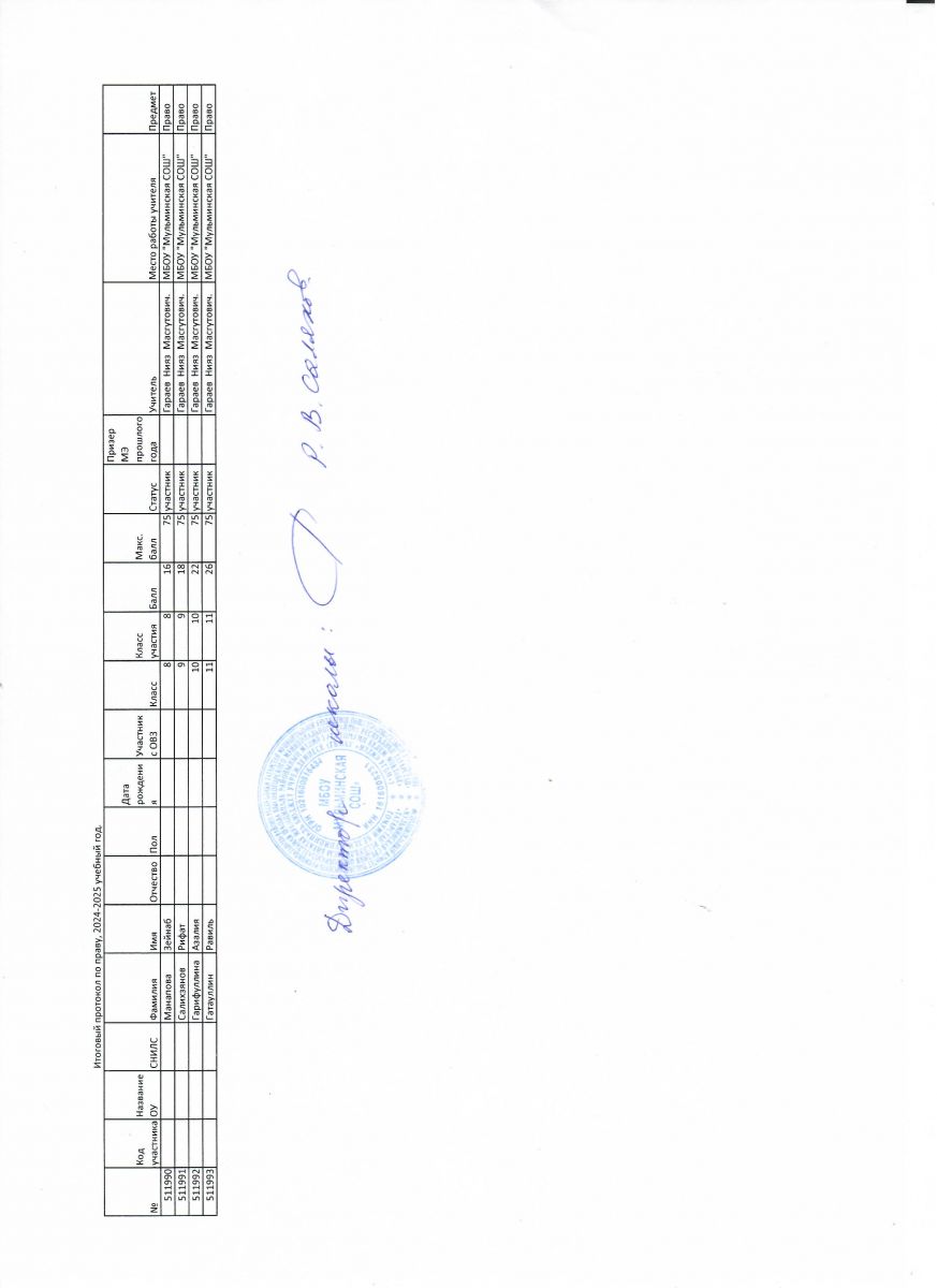 Первичный протокол по математике Итоговый протокол по математике