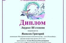 Поздравляем Яковлева Григория с дипломом Лауреата III степени