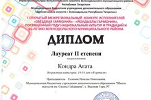 Поздравляем Кондра Агату, ставшую Лауреатом II степени I Открытого межрегионального конкурса исполнителей "Звездная гармонь".