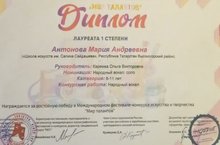 Поздравляем Антонову Марию, преподаватель Кареева О. В. с успешным выступлением в Международных фестивалях-конкурсах искусства и творчества "Мир талантов" и "Млечный путь" - Лауреат 1 и 2 степени!!!
