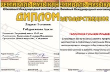 Поздравляем Габдракипову Адилю - (преподаватель Галиуллина Г. И.) с дипломом Лауреата 1 степени Юбилейного Международного многожанрового конкурса "Фестиваль музыкантофф", проходившего 10-11 октября 2020 года в г. Молсква.