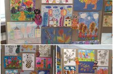 Выставка учащихся 1 класса отделения ИЗО на тему "Золотые краски осени".