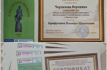 Перову Софью, Сабирову Сафину,Ташевцеву Маргариту, Феофанова Амиля, Камальтдинову Ильмиру, Гимадееву Индиру, Хашимову Алину, Капылову Диану, Мустафину Диану, Мусякаеву Илину, Салаеву Элину, Чертилову Веронику - ставшие обладателями Сертификатов "За творческий подход и участие в конкурсе.