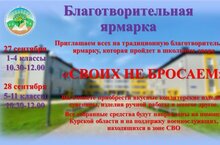 27 и 28 сентября приглашаем всех на традиционную благотворительную ярмарку , которая пройдёт в школьном дворе "Своих не бросаем!" . Все собранные средства будут направлены на помощь Курской области и на поддержку военнослужащих , находящихся в зоне СВО.