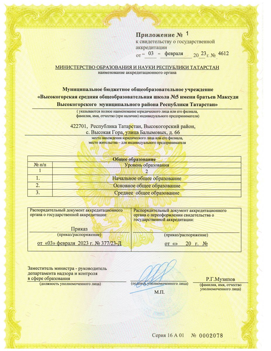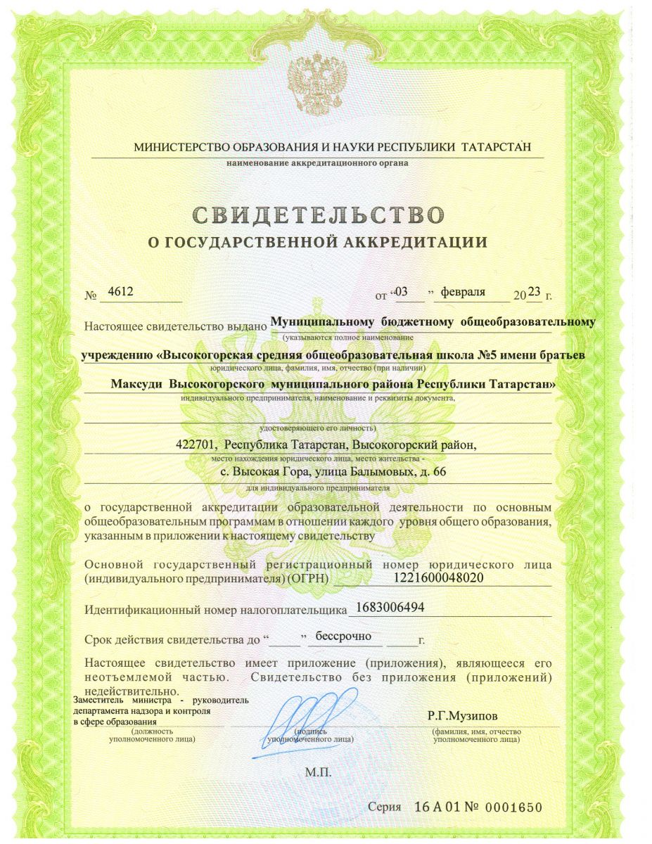 Муниципальное бюджетное общеобразовательное учреждение «Высокогорская средняя общеобразовательная школа №5 имени братьев Максуди Высокогорского муниципального района Республики Татарстан»