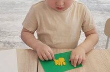 Затем мы провели пальчиковую гимнастику "Лодочка": сложив ладони лодочкой, мы отправились в сказочный путь по мягким голубым волнам. Ладошки плавно покачивались вверх-вниз, словно настоящая лодочка, скользящая по морю. Потом раскрыли пальчики веером — и вот уже ветер надувал паруса, заставляя лодочку быстро мчаться вперёд. Даря ощущение свободы и полёта.