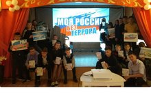 Бүген, укучылар "Россия террорга каршы" дигән акцияда катнаштылар.
