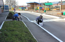 Весь коллектив детского сада вышел в этот ясный погожий день на территорию сада. Работники не только убрали мусор, но и подготовили почву для цветника и огорода