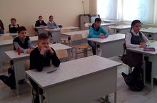 Бүген безнең мәктәптә физика буенча район олимпиадасы үтте. 5-11 нче сыйныф укучылары олимпиада мәсьәләләре чиштеләр.