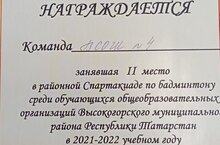 Сегодня, 27.04 в УСЗ "Биектау" прошла районная Спартакиада по бадминтону. Команда, в составе Сафаргалиевой Регины, ученицы 8а класса и Ляпина Дамира, ученика 9а класса, заняли 2 место. В личном зачёте Регина и Дамир заняли 3 места. Молодцы!!!