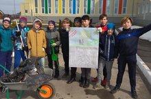 Сегодня ученики 6 и 7 классов в рамках экологической весны вышли на уборку территории школы. /Бүген 6 һәм 7 сыйныф укучылары экологик яз кысаларында мәктәп территориясен җыештырырга чыктылар.
