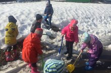 Вот так на прогулке с детьми мы раскидываем снег,что бы он быстрее растаял.