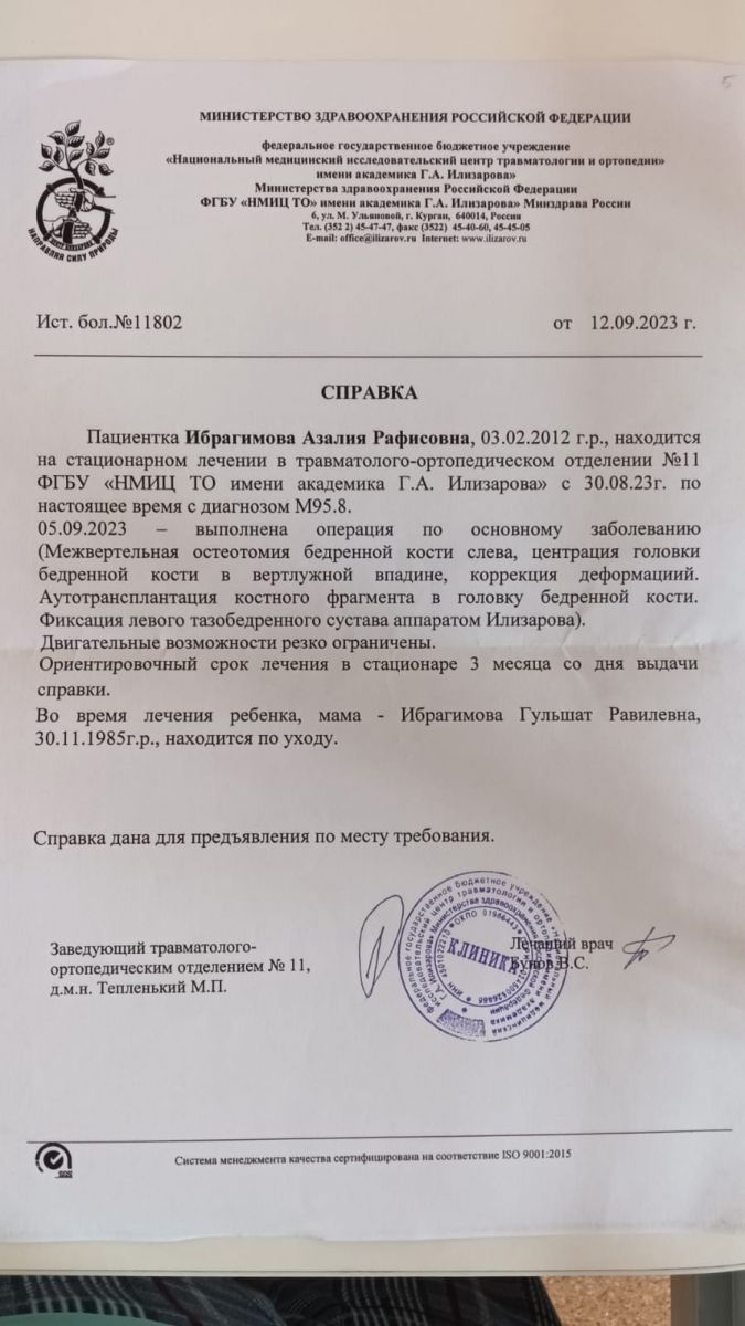 Благотворительная ярмарка принесла в помощь семье Ибрагимовой Азалие Рафисовне 03.02.2012 г.р. 86 000 рублей для дальнейшего лечения и восстановления.