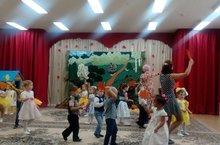 Средние группы на осеннем утреннике встретились с мультипликационным персонажем - Лунтиком.