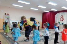 "Чебен - чебенчек" тә балалар бакчасына әниләрне котларга дип кунакка килде.