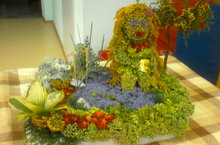 Сегодня творческий коллектив детского сада создавал композицию из живых цветов. Итогом работы была композиция по произведению Г.Тукая "Су анасы"