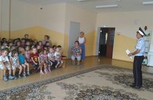 Сегодня в детском саду прошла встреча с инспектором ДПС Аллиулиным А.Р на тему: "Правила поведения детей на дороге и в транспорте"