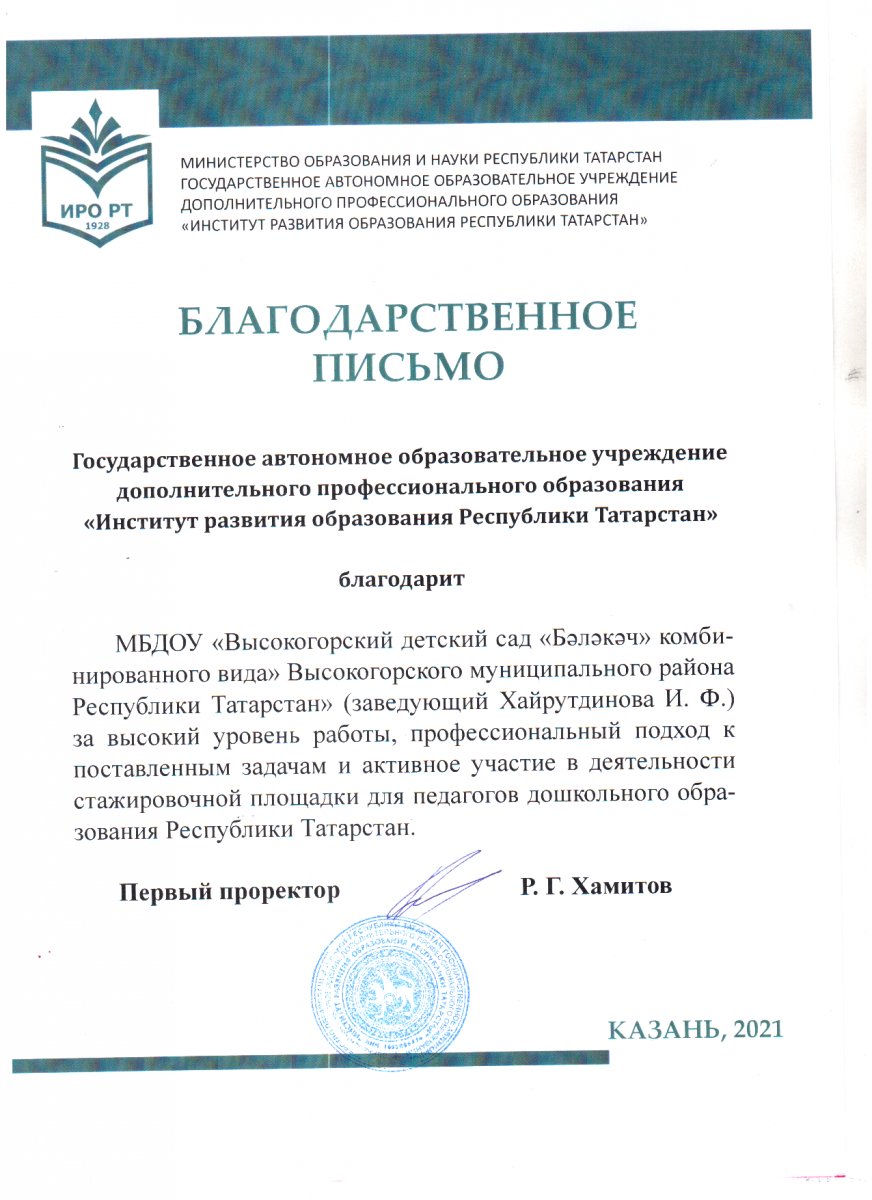 Муниципальное бюджетное дошкольное образовательное учреждение «Высокогорский детский сад «Бэлэкэч» комбинированного вида» Высокогорского муниципального района Республики Татарстан»