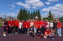 Утро началось с торжественной линейки, поднятия флага. Ребята исполнили флешмоб "Моя Россия- скажет Да!"Прошли военно-тактичекую игру "Гром"
