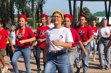 Флэш-моб посвященный Дню Российского флага в рамках августовской конференции педагогических работников.