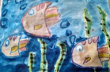 В объединении "Живопись" обучающиеся рисуют акварелью на тему "Подводный мир". Руководитель Шамшурина О.В.