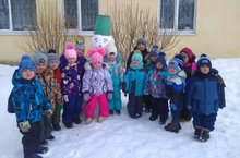 Вот и пришла пора прощаться с зимой...Тепло.... Солнце... Тает снег.... Дети на участке детского сада слепили снеговика.