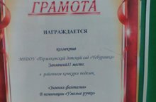 Наша поделка на тему "В гостях у новогодней елки" в номинации "Умелые ручки" заняла 2 место в районном конкурсе "Зимние фантазии".Молодцы!!!