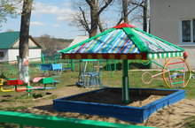 С 1 по 11 мая в дестком саду сделали косметический ремонт: покрасили забор детского сада и детское оборудование на игровой площадке.