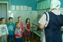 25 мая дети старшей и подготовительной подгрупп ходили на экскурсию на кухню ДОУ.Повар Рамзия Юсуповна рассказала детям о профессии повара,о ее важности,рассказала детям о блюдах,которые она им готовит,познакомила детей с кухонным инвентарем.Дети задавали ей интересные вопросы,рассказали стихи о профессии "повара".Экскурсия прошла очень интересно,дети узнали много интересного о профессии ,многие загорелись стать поваром.