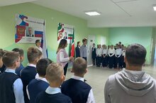Сегодня в школе в 8:00 ученики торжественно подняли флаги и прошли на классные часы "Разговоров о важном!"