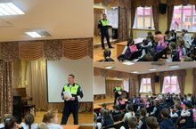 7.10 Нибиуллин И.И. сотрудник ОСБ ГИБДД МВД по РТ.Провёл беседу по правилам дорожного движения . Ученики школы вместе с ним вспомнили про фото-отражающие элементы на одежде в темное время суток , а так же как безопасно переходить дорогу .