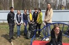 ЭКО-десант акция кысаларында, 7 нче Б сыйныфы укучылары балалар мәйданчыгын җыештырдылар.