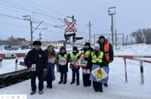 Сегодня наши ребята совместно с представителями районной комиссии по безопасности дорожного движения провели профилактическую акцию на ж/д переезде. Водителям и пешеходам раздали памятки безопасности на железных дорогах.
