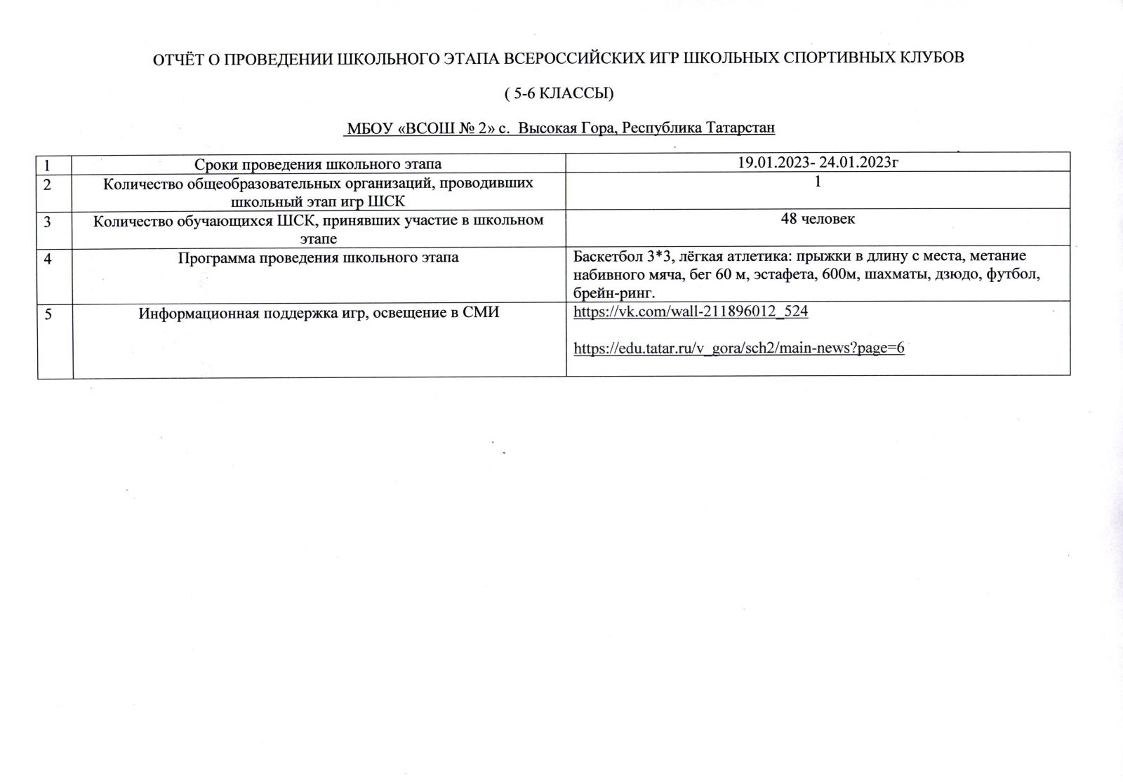 Отчёт о проведении школьного этапа «Президенских состязаний» скачать