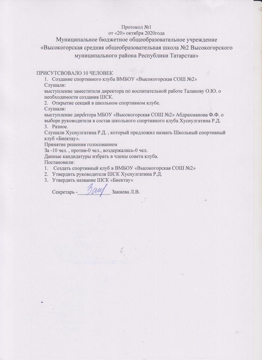 Протокол общего собрания о создании ШСК