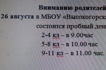26 августа в МБОУ "Высокогорская СОШ № 3" состоится пробный день 18.08.2020