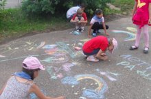 2 день пришкольного лагеря «Улыбка» прошёл под названием «Летние радости». Ребята участвовали в конкурсе рисунков на асфальте «Летние радости», заполняли анкету «Я в летнем лагере»