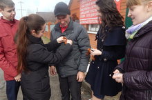 Жителям села на улице вручались георгиевские ленточки как символ 70-летия Победы.