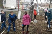 В рамках всемирного субботника ученики и учителя школы убирались на территории школы.