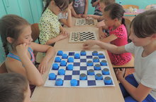 Дети соревновались в игре в шашки.