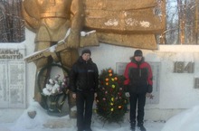 По традиции возложили венки к памятнику героям, павшим в бою, и к бюсту Н.Д.Липатову.