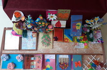 Мәктәп фойесында "Әнигә бүләк"дигән кул эшләнмәләре күргәзмәсе оештырылды.