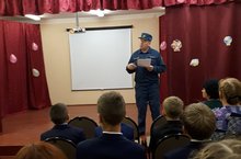 Начальник пожарной части Закиров Р. Ш. провел с учащимися школы открытый урок МЧС